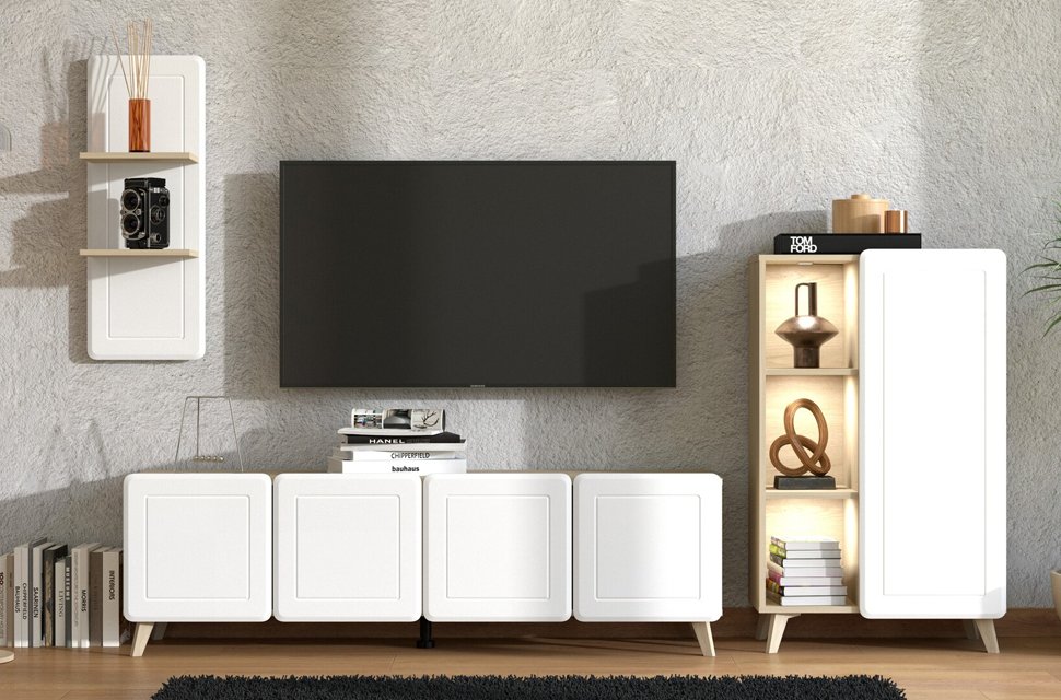 L’étagère ELGIN, en combinaison du décor chêne pédonculé clair et de la feuille mate blanche, est une solution élégante et fonctionnelle pour l’aménagement du salon. Étant d’une conception compacte et moderne, cette étagère offre un espace utilisable pratique grâce à ses étagères ouvertes et fermées, dont les portes sont équipées d’un mécanisme de fermeture amortie assurant une fermeture silencieuse et sécurisée. Il est possible d’y ajouter un éclairage, ce qui apporte une touche visuelle supplémentaire ainsi qu’une fonctionnalité accrue à l’espace.