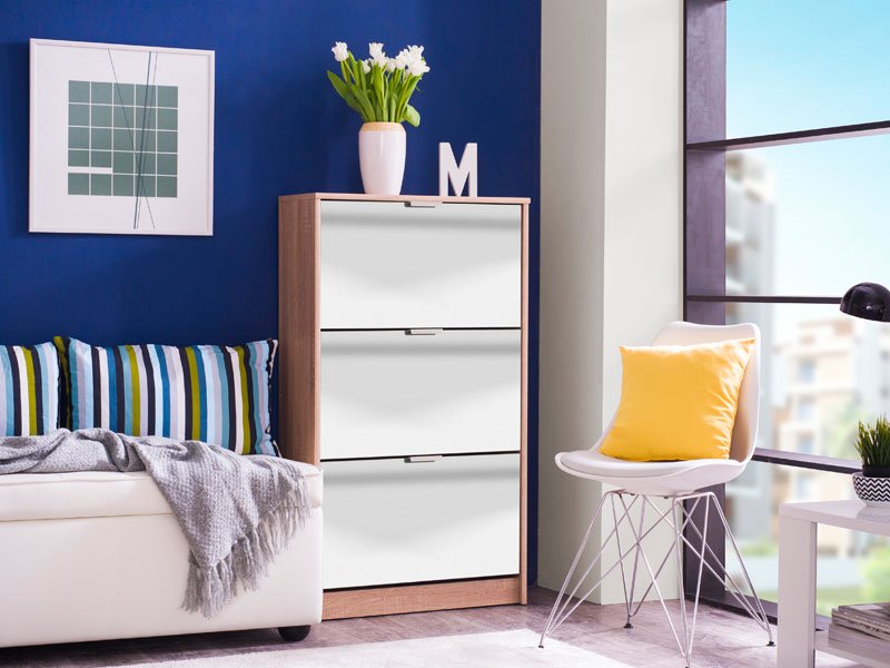 L’armoire à chaussures HUGO 23 OG, en combinaison de miroir et de corps au décor chêne sonoma, dispose de trois segments pour ranger les chaussures de saison, et grâce à ses dimensions et à une organisation à deux rangs, elle représente une solution très remarquable fonctionnelle pour l'aménagement d’une entrée de plus petites dimensions.