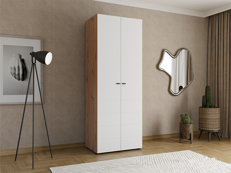 L’armoire NEVIS 2K h207, en combinaison de décor blanc opaque et chêne artisan, est une solution pratique pour le rangement des vêtements. Son intérieur comporte un espace utilisable fonctionnel avec une barre de garde-robe, permettant une organisation soignée des vêtements. Sa conception moderne et l’harmonie de son décor permettent à ce modèle de s’intégrer facilement dans différents intérieurs. L’armoire fait partie de la collection NEVIS et peut être combinée avec les autres modèles de la même gamme.