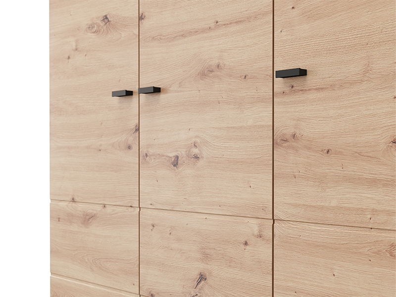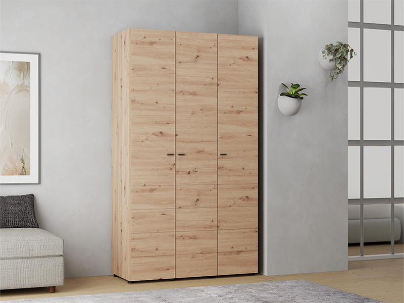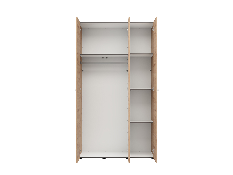 L’armoire NEVIS 3K h207, au décor chêne artisan, est une solution fonctionnelle pour le rangement des vêtements. L’armoire comporte un segment à double battant avec une barre de garde-robe et un segment à unique battant avec des étagères, permettant une organisation claire des vêtements et des accessoires. Il est possible de compléter l’intérieur avec un ensemble d’étagères supplémentaires. L’armoire fait partie de la collection NEVIS et peut être combinée avec les autres modèles de la même gamme.