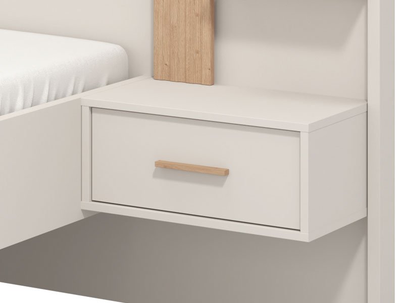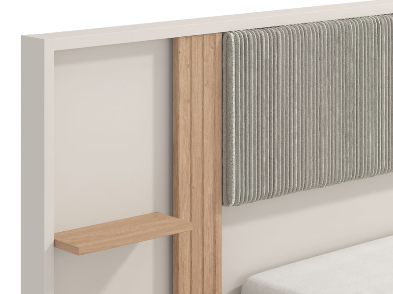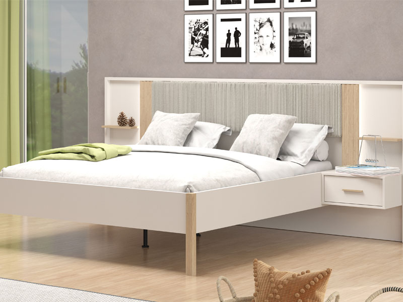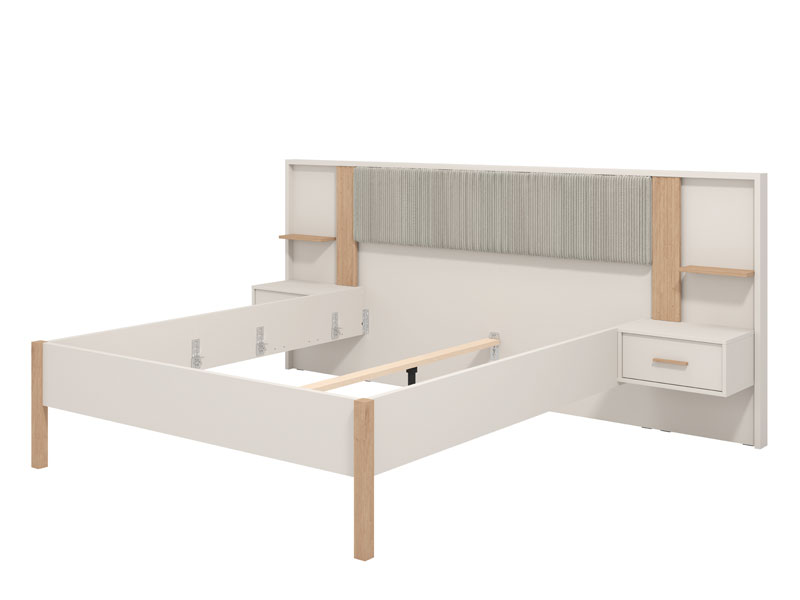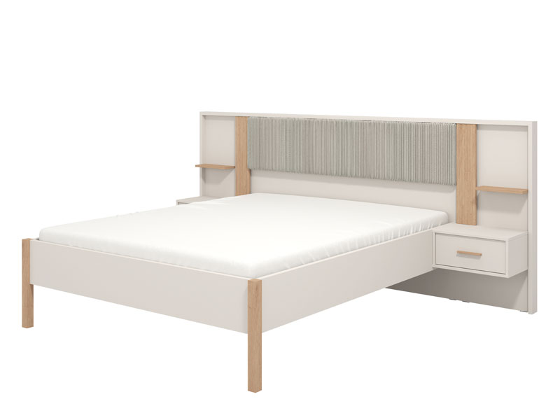 Le lit double BELFORT 180 PLUS, alliant décor cachemire, chêne artisanal et feuille de chêne artisanal, contribue à la sophistication et à l'élégance de l'ensemble et constitue la pièce maîtresse de la chambre. L'un des atouts de ce lit réside dans ses tables de chevet intégrées à la tête de lit, alliant esthétique et fonctionnalité. Compatible avec un matelas de 180 cm x 200 cm, il est possible d'installer un éclairage. Il fait partie du système d'éléments de décoration de chambre BELFORT, une création design et moderne.