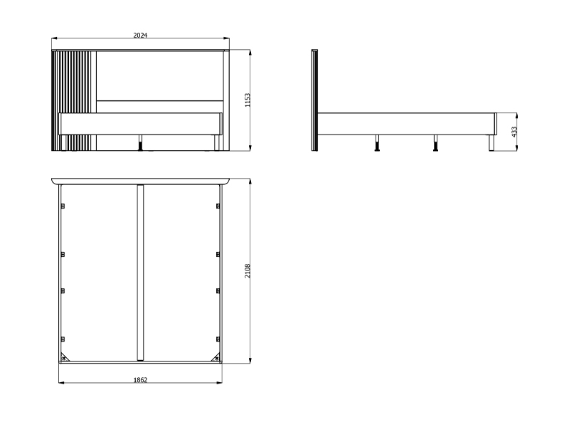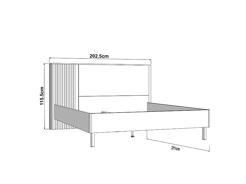 Ce lit est conçu pour un matelas de 180 cm x 200 cm et est livré sans plancher ni matelas, offrant une possibilité de l’adapter à vos propres besoins. Sa forme fonctionnelle et épurée permet un placement et une organisation aisés de l’espace autour du lit.