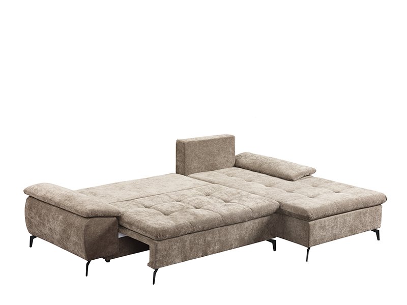 Nom exact du motif : Étoffe WIND 11 brun clair, angle à droite. Le canapé d'angle ANDI se distingue par sa conception moderne et ses dimensions généreuses, idéal pour un salon aménagé dans un style moderne. Grâce à un système pratique de rabattement du dossier, il se transforme facilement en lit avec une surface de couchage de 134x200 cm. Il est fabriqué en mousse, offrant ainsi un bon niveau de confort pour une utilisation quotidienne. Ce canapé dispose d’un coffre de rangement, pratique pour ranger la literie et autres objets.