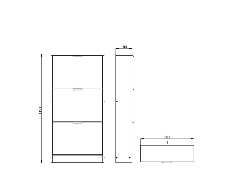 L’armoire à chaussures BASE 13, au dessein blanc opaque dispose de trois étagères pour ranger les chaussures de saison, et grâce à ses dimensions, représente une solution fonctionnelle pour l'aménagement d’une entrée de plus petites dimensions.