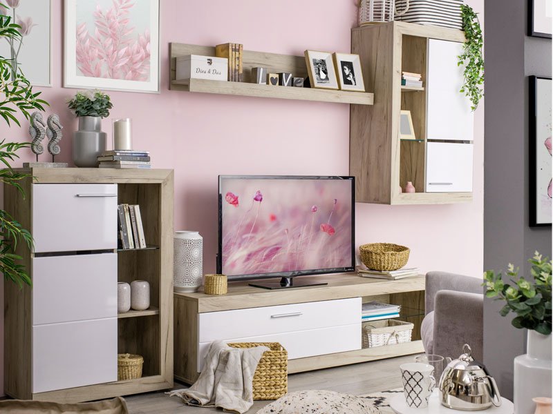 La combinaison meuble TV ROSSO, au décor chêne gris avec des façades revêtues d’une feuille 3D MDF laquée blanche, conçue pour répondre aux exigences fonctionnelles et esthétiques de l’aménagement de chaque ambiance. La combinaison meuble TV ROSSO permet l'ameublement complet du salon, grâce à la disposition extrêmement pratique des étagères ouvertes et fermées. Il est possible d'ajouter un éclairage LED supplémentaire. Les dimensions de la partie pour le téléviseur sont environ de 1200x900mm (largeur x hauteur).