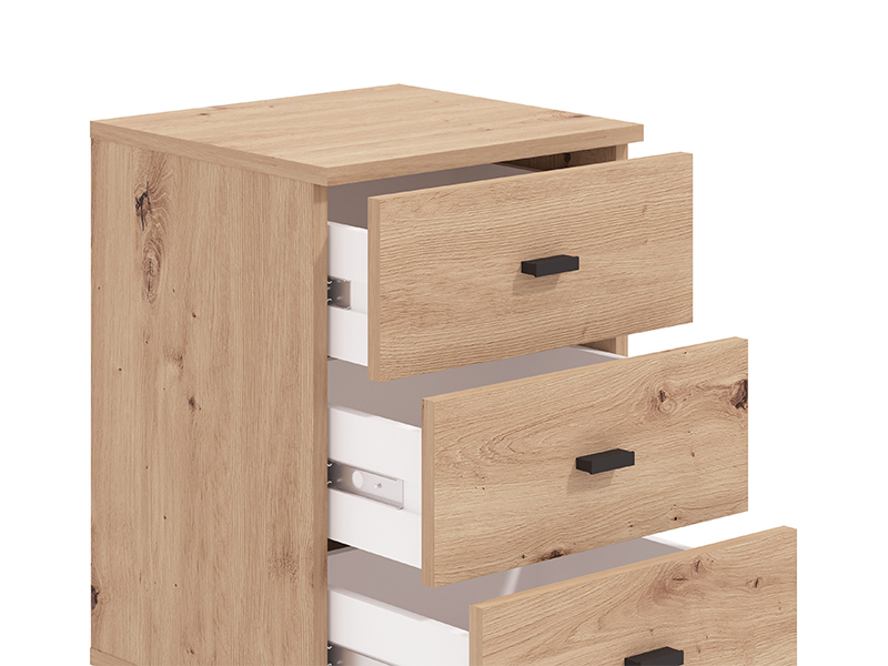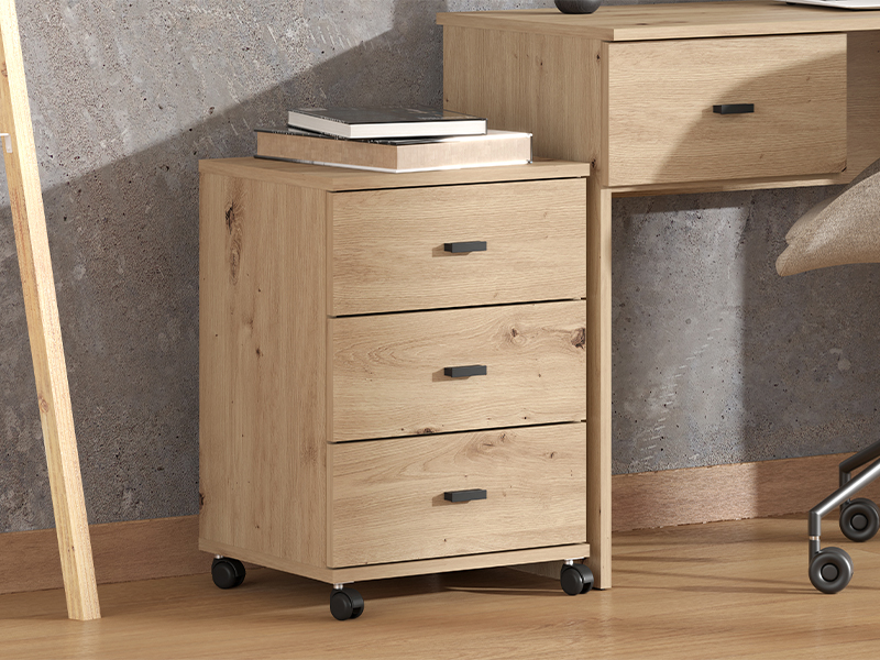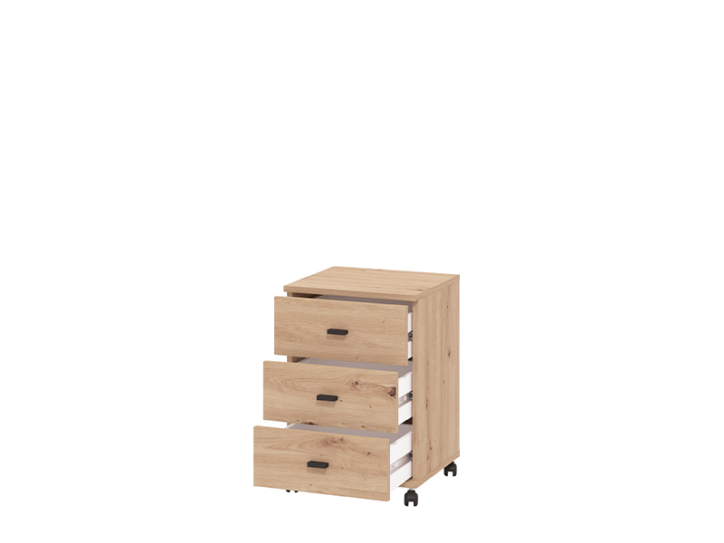 La commode à tiroirs ALMOND 3F, au décor chêne artisan, se distingue par une conception simple et fonctionnelle. Elle se compose de trois tiroirs permettant un rangement clair et pratique des objets, et grâce à ses roulettes, elle est facilement déplacée dans l’espace. La commode à tiroirs ALMOND 3F est un ajout pratique pour un bureau ou une chambre d’enfants.