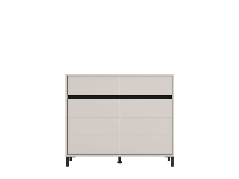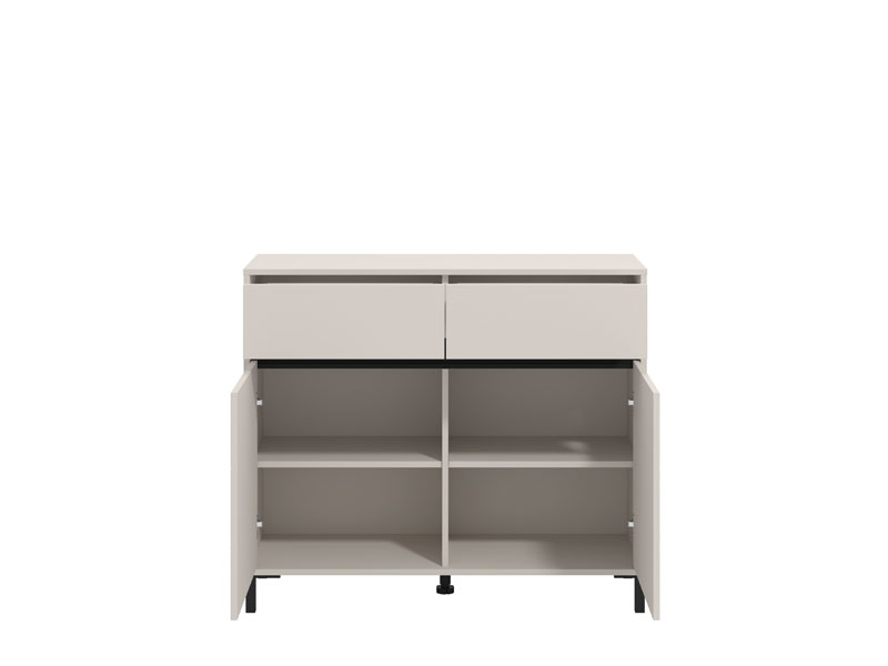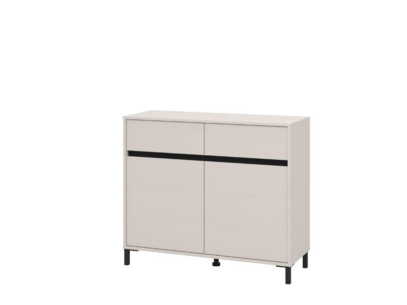 La commode MARRON 106 2K2F2V en combinaison de décor cachemire et feuille mate noire est un meuble fonctionnel indispensable dans chaque ambiance de la maison.