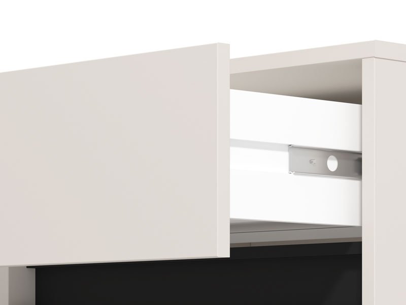 L’élément de couloir ARRAN 1K1F, au décor cachemire et des détails en feuille mate noire, dispose d’un segment fermé pratique pour ranger les chaussures qui se compose d’ailes avec les étagères et d’un tiroir. Il peut être combiné avec d’autres éléments de la collection pour le couloir ARRAN qui complètent l'idée d’intérieur du couloir de votre maison.