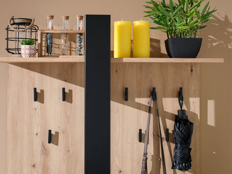 Le couloir CAPITELLO, en combinaison chêne artisan, couleur noir et feuille mate noire, rendra la première rencontre avec l’intérieur de chaque maison efficace et agréable. L’espace utilisable se compose de segments fermé et ouvert de rangement des chaussures de sorte que vous obtiendrez ainsi un espace organisé de manière fonctionnelle.