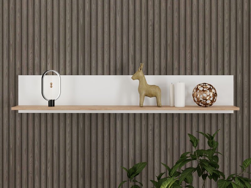 L’étagère murale BEDFORD ZP en combinaison des décors blanc opaque et chêne artisan apporte à l’espace la chaleur, l’élégance et le charme naturel. Elle offre un espace pratique et organisé pour le rangement des livres, des objets décoratifs ou des petits objets, contribuant ainsi à la fonctionnalité et à l’harmonie stylistique du salon. L’étagère murale BEDFORD ZP fait partie du système d’éléments BEDFORD, se distinguant par l’harmonie de l’esthétique rustique et de la conception moderne et fonctionnelle.