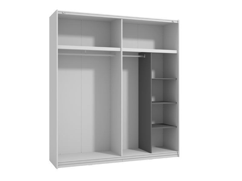 Le nom exact du motif : corps gris graphite, étagère gris graphite. L'étagère fonctionnelle FUP de couleur gris graphite, en tant qu'accessoire, est destinée à équiper les armoires coulissantes d'une largeur de 200 cm et d'une hauteur de h217 de la gamme Forma Ideale. Il se compose d'un cadre avec trois étagères de séparation avec une tringle de penderie assortie.