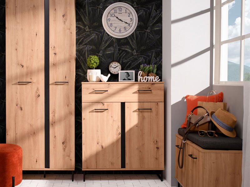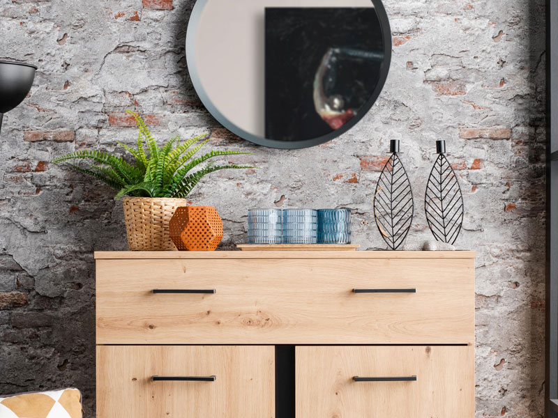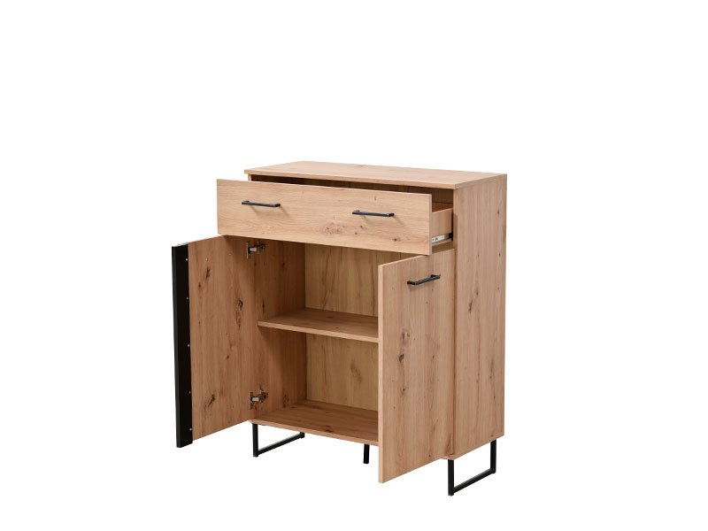 La commode SARDINIA 2K1F, est une combinaison de la chaleur du chêne artisan naturel et rustique avec une touche d'éléments décoratifs noirs subtils étant une caractéristique du style industriel dans l’architecture d’intérieur. Elle se compose de deux segments fermés avec une étagère de séparation et un tiroir fonctionnel. Elle fait partie de la collection SARDINIA du même nom avec laquelle elle forme l'intérieur de la chambre, et qui apporte le reflet d'un style de vie authentique et audacieux dans votre maison.