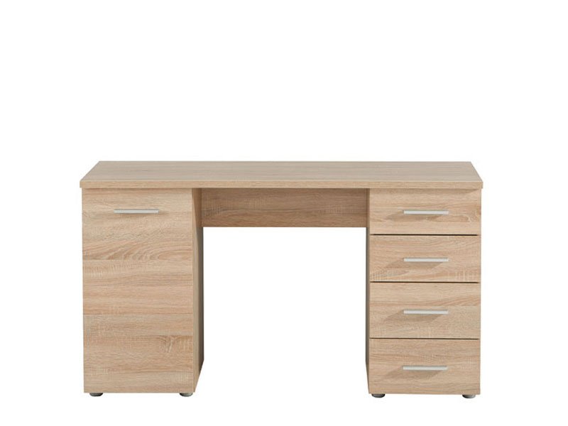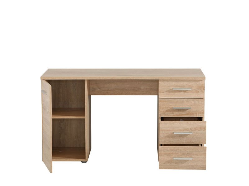 La table ordinateur LIBER, au dessein chêne sonoma, est le détail principal d’un espace de travail parfaitement fonctionnel où tout doit respirer l'ordre et l'organisation harmonieuse. La composition pratique du plan de travail, du système de tiroirs et du segment fermé à battant fournit assez d’espace pour ranger et trier les objets et les documents importants.