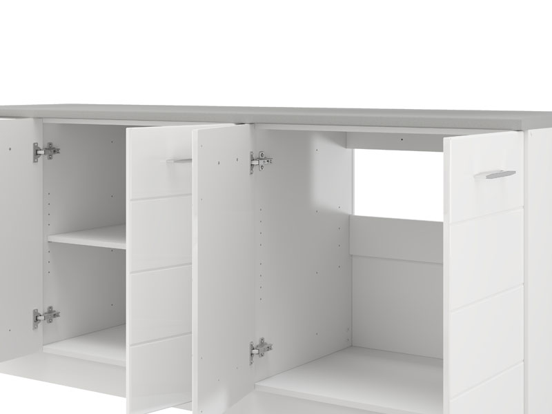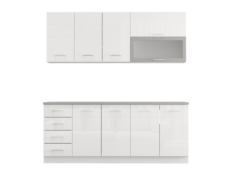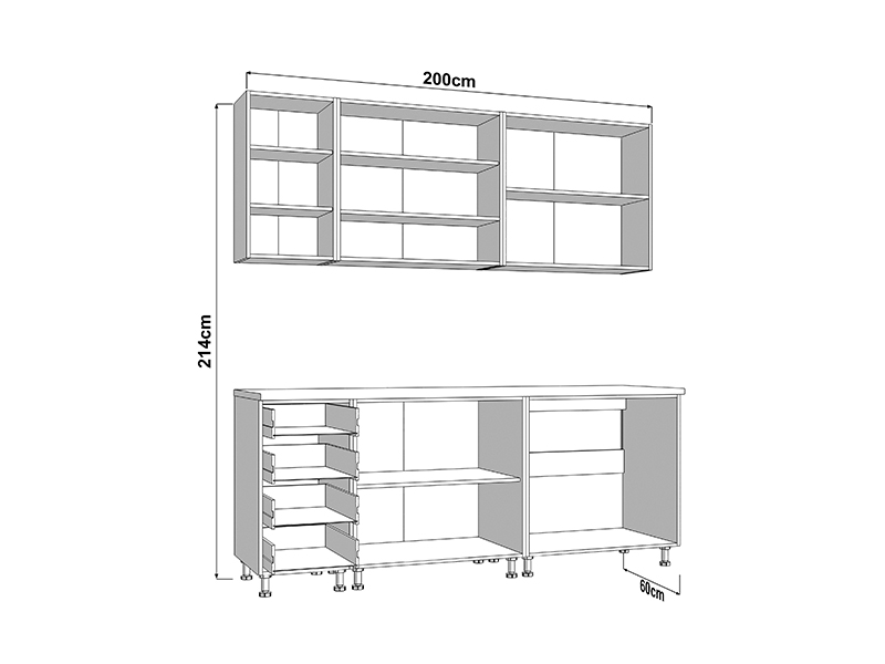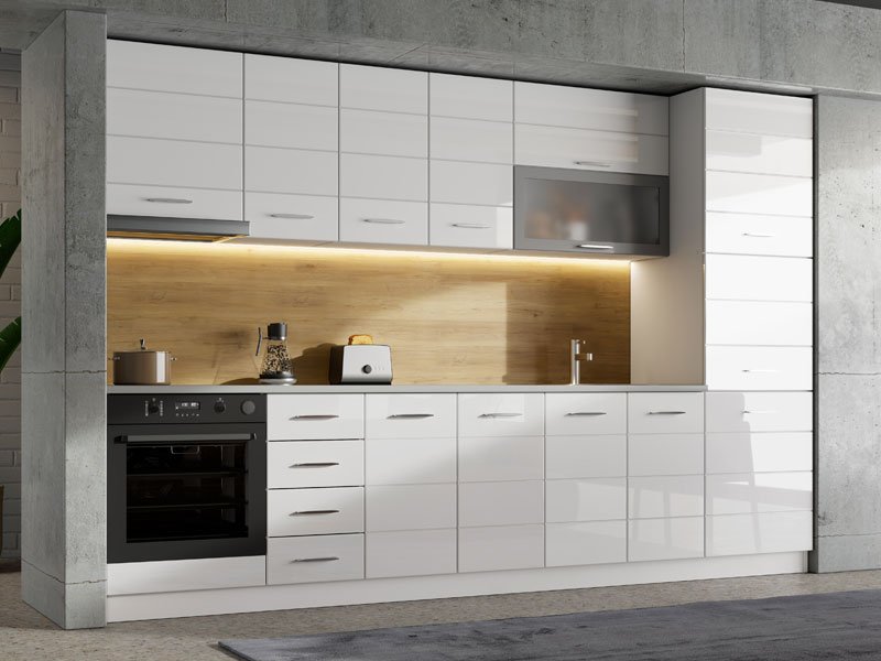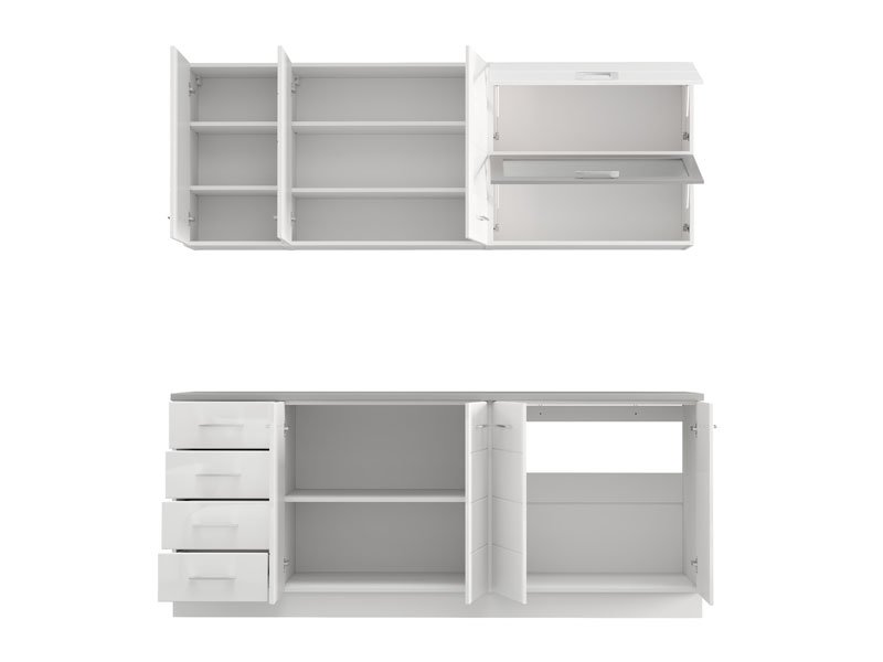 La cuisine UNA 200, en combinaison du décor blanc opaque et de la feuille laquée blanche, est une solution élégante et fonctionnelle pour l’aménagement des espaces de cuisine modernes. Ses éléments agencés de manière pratique permettent une organisation efficace et un rangement facile des ustensiles de cuisine, tandis que sa conception minimaliste, aux lignes épurées et aux tons neutres, contribue à une ambiance lumineuse et ordonnée. La cuisine est livrée sans plan de travail, évier, ni plinthe, et la profondeur totale, y compris le plan de travail, est de 60 cm, ce qui permet une planification rationnelle de l’espace et une utilisation quotidienne pratique.
