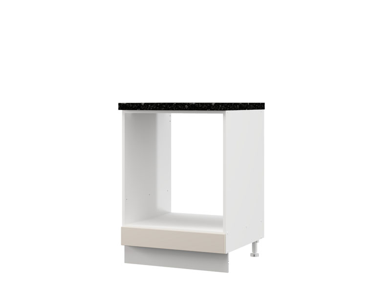L’élément de cuisine DRINA D60UR, en combinaison du décor blanc opaque et de la feuille laquée sable, est destiné à l’installation du four et est une solution pratique pour l’aménagement des cuisines nécessitant des appareils électroménagers intégrés. Sa conception moderne et minimaliste, aux lignes épurées et aux tons neutres, assure une harmonie esthétique avec les autres éléments de la cuisine DRINA 180, contribuant ainsi à la fonctionnalité et à un aspect ordonné et minimaliste de l’espace.