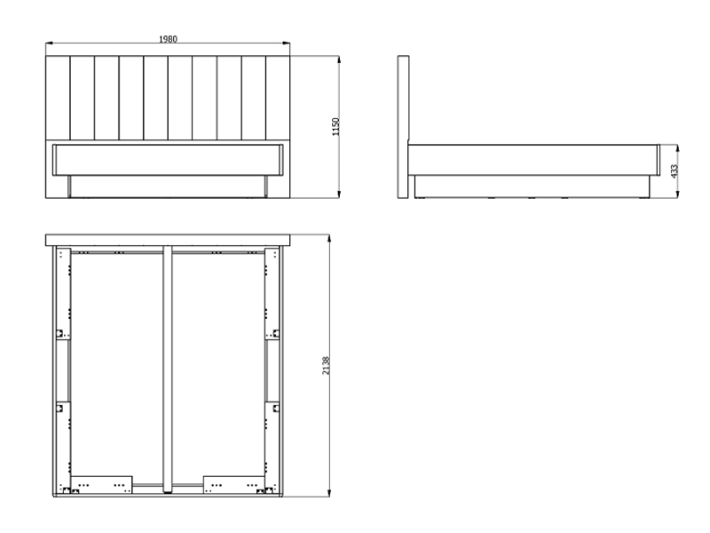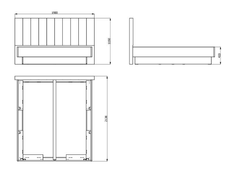 Le lit est conçu sans plancher ni matelas, prévu pour un matelas de 180 × 200 cm, ce qui permet une organisation personnalisée et le choix d’une literie adaptée.