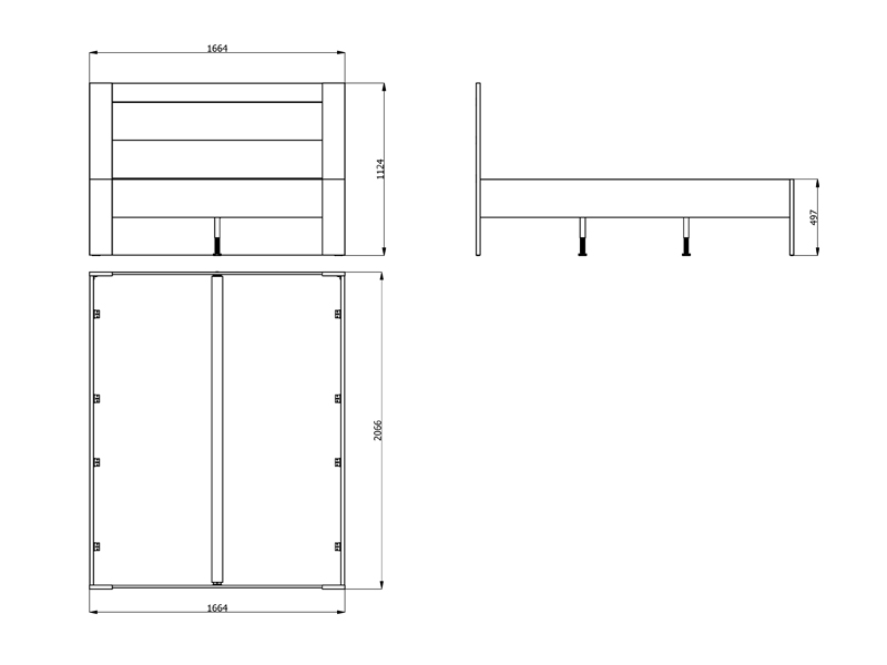 Le lit est conçu sans plancher ni matelas, prévu pour un matelas de 160 × 200 cm, avec une option d’ajouter un tiroir, un ensemble de deux tiroirs ou un ensemble complet de tiroirs, selon les besoins individuels et l’organisation de l’espace.