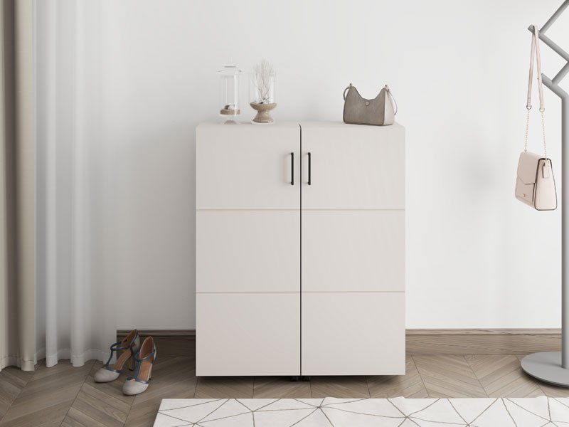 Le meuble à chaussures ISLAY 91 2K h113, au décor cachemire avec des rayures marquées à chaud, est une solution pratique et élégante pour le couloir. L’intérieur de ce meuble à chaussures à double battant, semblable à une commode avec des étagères fermées, permet une organisation rangée et fonctionnelle des chaussures.