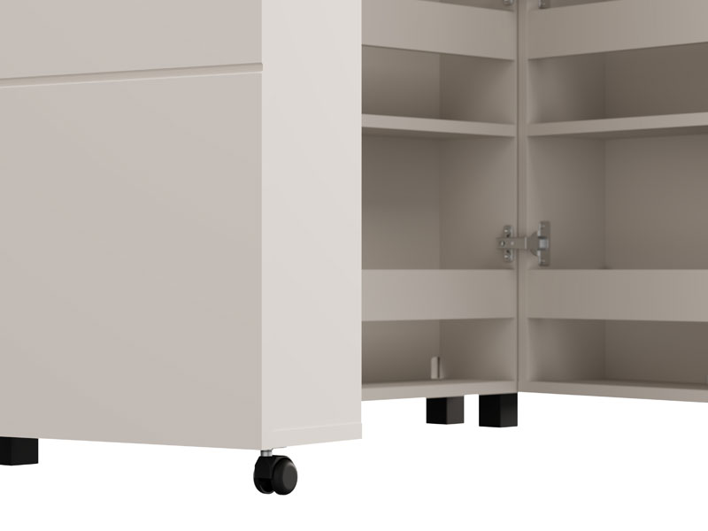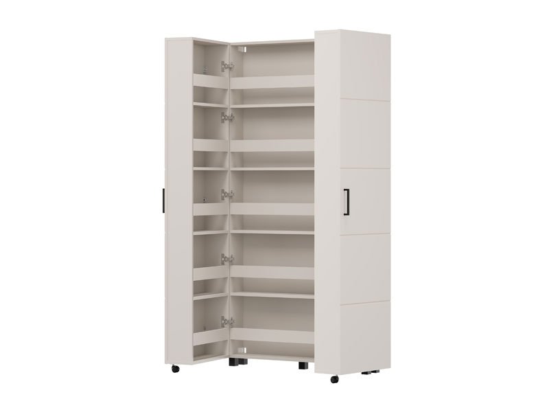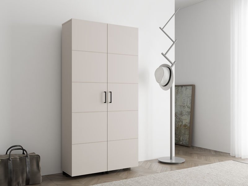 Le meuble à chaussures ISLAY 91 2K h185, au décor cachemire avec des rayures marquées à chaud sur la façade, est une solution pratique et élégante pour le couloir. L’intérieur de ce meuble à chaussures à double battant avec des étagères fermées permet une organisation fonctionnelle et rangée des chaussures.