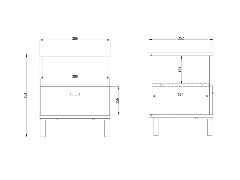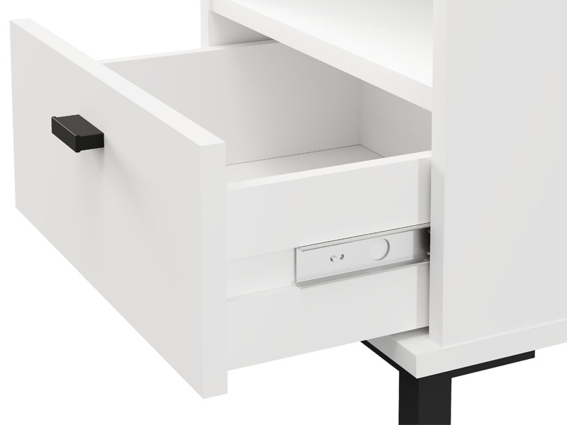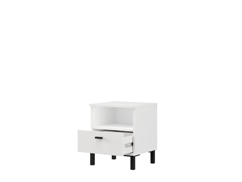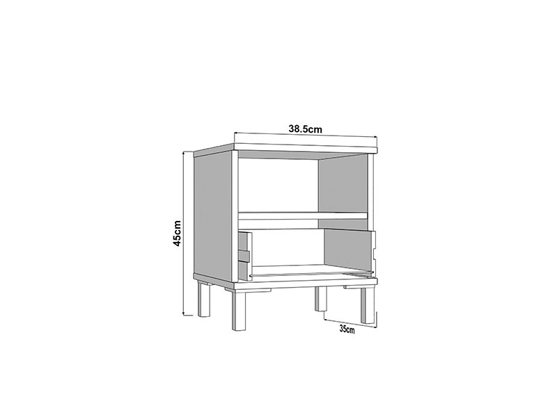 L’espace utilisable de cette table de nuit se compose d’un tiroir et d’une étagère ouverte, permettant un rangement pratique des petits objets et des articles du quotidien.