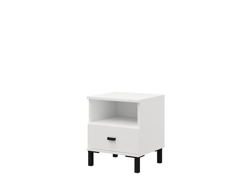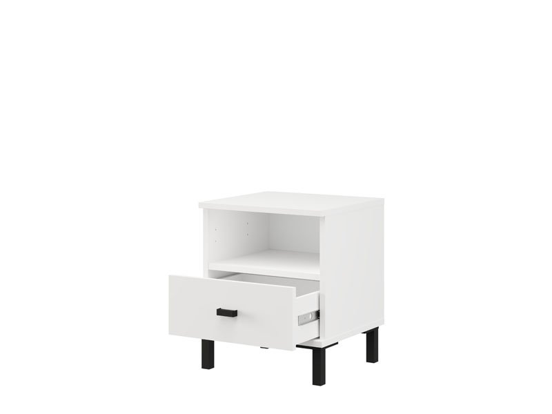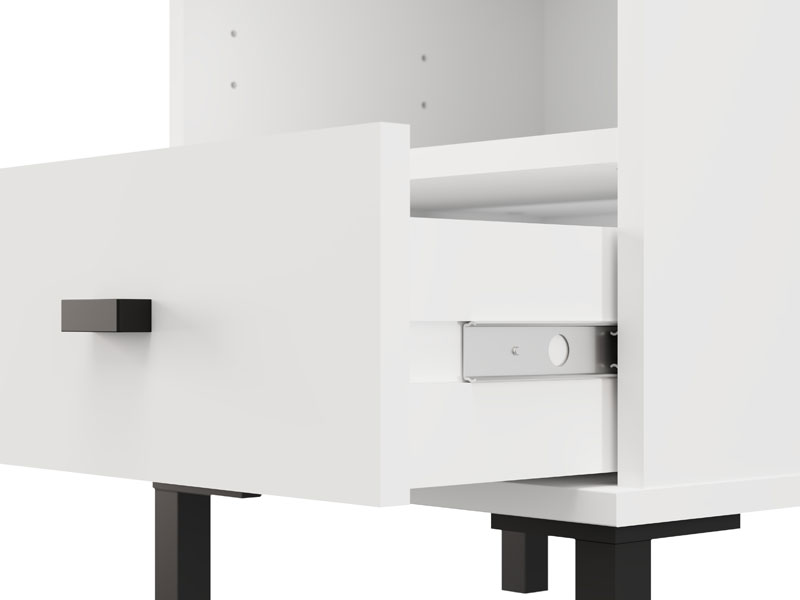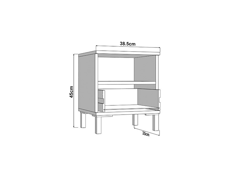 L’espace utilisable de cette table de nuit se compose d’un tiroir et d’une étagère ouverte, permettant un rangement pratique des petits objets et des articles du quotidien.