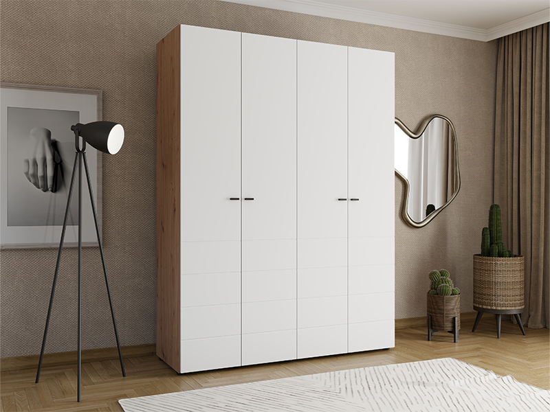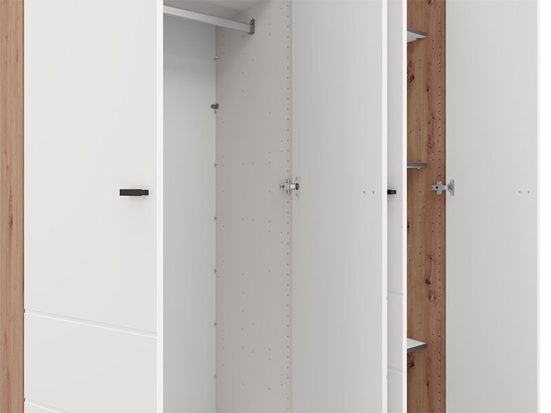 L’armoire NEVIS 4K h207, en combinaison de décor chêne artisan et blanc opaque, est une solution fonctionnelle et moderne pour l’organisation des vêtements. Son espace utilisable comprend un segment à double battant avec une barre de garde-robe et un segment à double battant avec des étagères, permettant une organisation claire et pratique des vêtements et des accessoires. Il est possible d’ajouter un ensemble d’étagères pour une utilisation encore plus efficace de l’espace intérieur. L’armoire NEVIS 4K h207 fait partie de la collection NEVIS et peut être combinée avec les autres modèles de la même gamme.