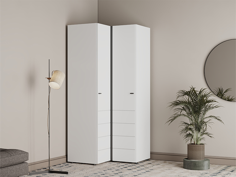 L’armoire NEVIS UG h207, au décor blanc opaque, est une solution fonctionnelle et moderne pour une utilisation optimale de l’espace. Sa conception angulaire permet une organisation optimale des vêtements et des accessoires – une partie de l’armoire comporte une barre de garde-robe, tandis que l’autre est dotée des cloisons, offrant ainsi un espace utilisable pratique et dégagé. L’armoire NEVIS UG h207 fait partie de la collection NEVIS et peut être combinée avec les autres modèles de la même gamme.