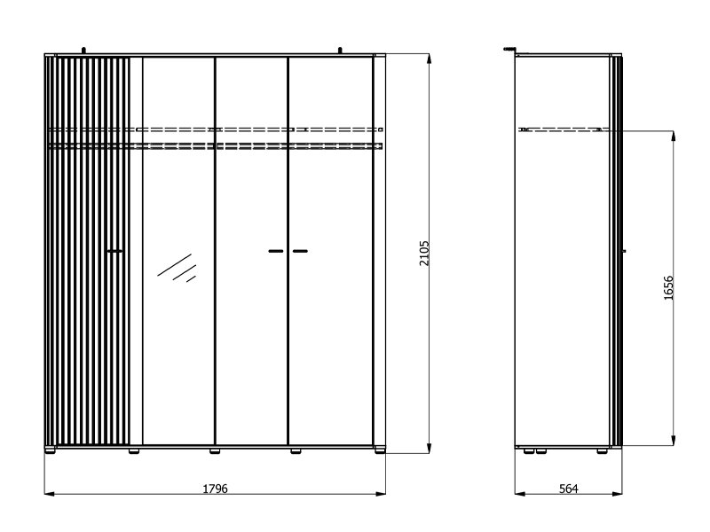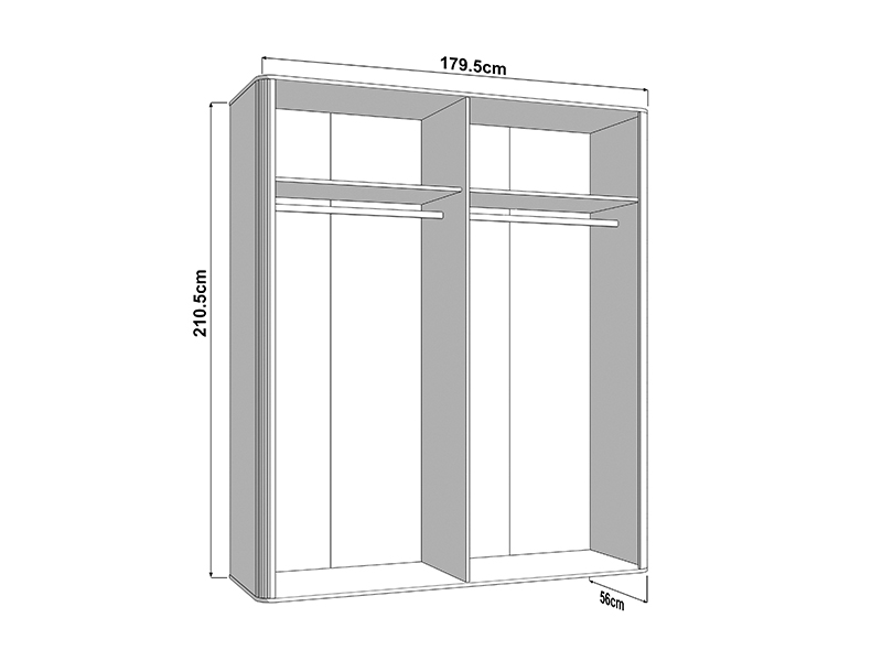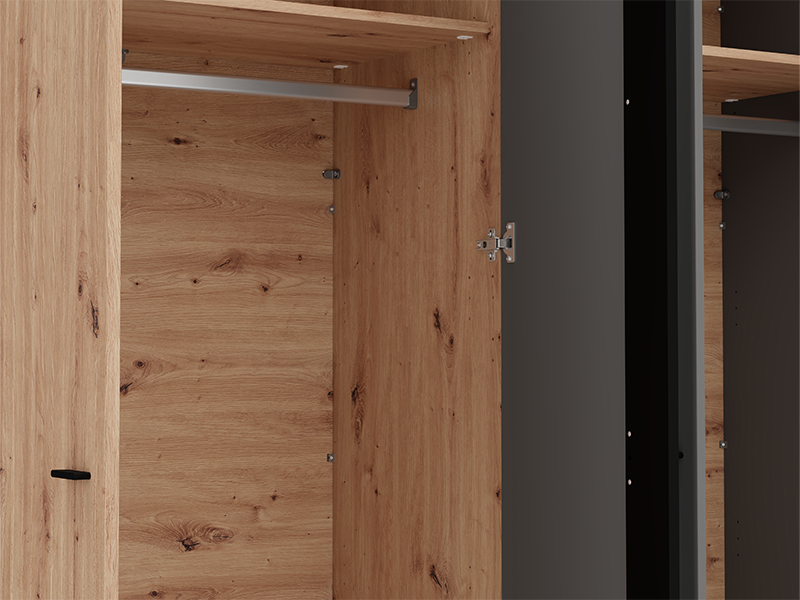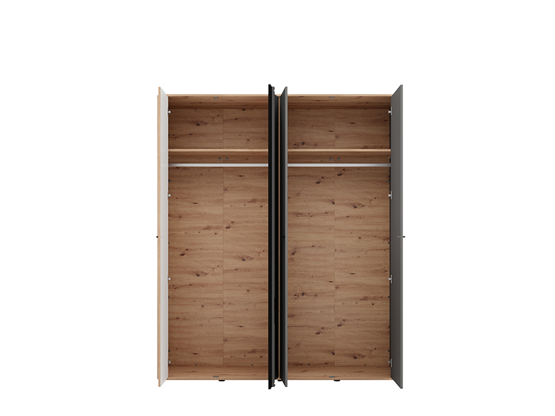 L’espace utilisable de cette armoire se compose de deux barres de garde-robe, permettant un rangement clair et pratique des vêtements. L’armoire dispose également de la possibilité d’ajouter ultérieurement un ensemble d’étagères, ce qui améliore davantage la fonctionnalité et l’organisation de l’espace intérieur.