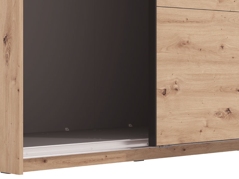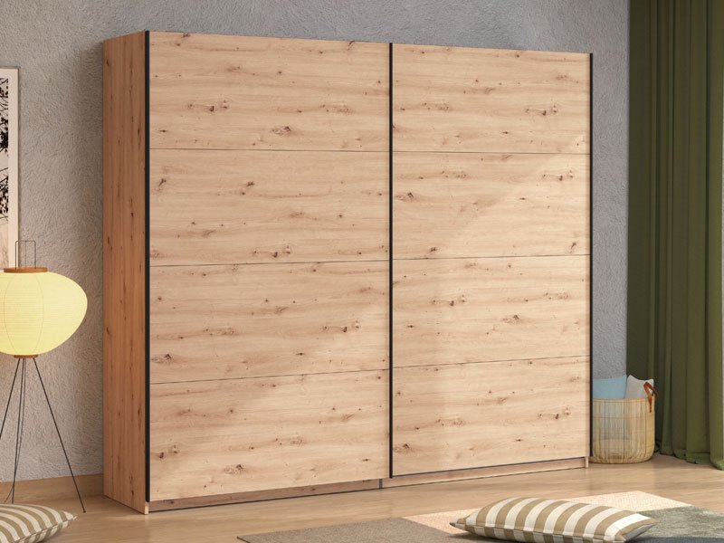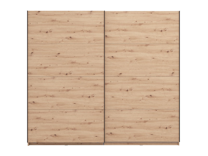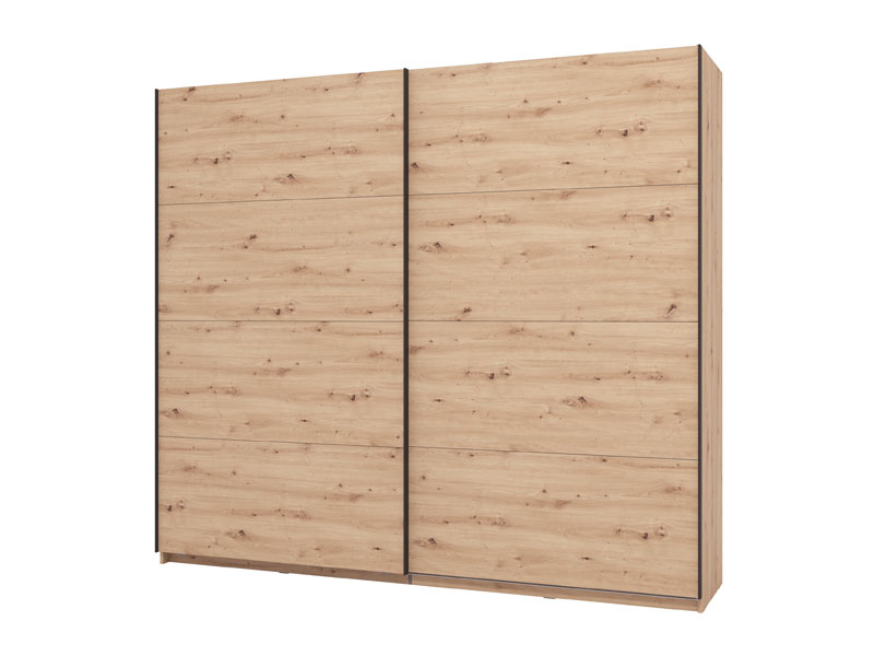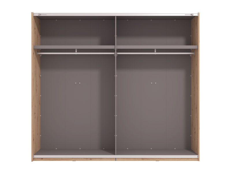 Le modèle de placard GARD 245 h217 à portes coulissantes, au décor chêne artisan, contribue à la fonctionnalité intérieure, à l’esthétique et à l'utilisation maximale de l'espace. L’espace utilisable de ce modèle se compose des barres de garde-robe et d’une étagère pratique dans les parties gauche et droite. Il dispose de la possibilité d’ajouter un Ensemble d’étagères adaptées à ce modèle de placard ou d’autres mises à niveau fonctionnelles, ainsi que la possibilité d’installer des amortisseurs pour les portes coulissantes.