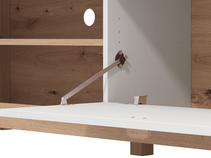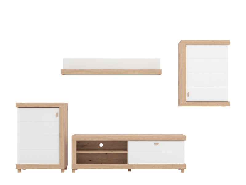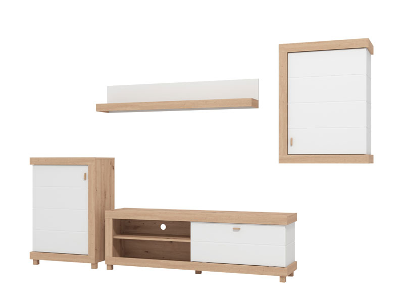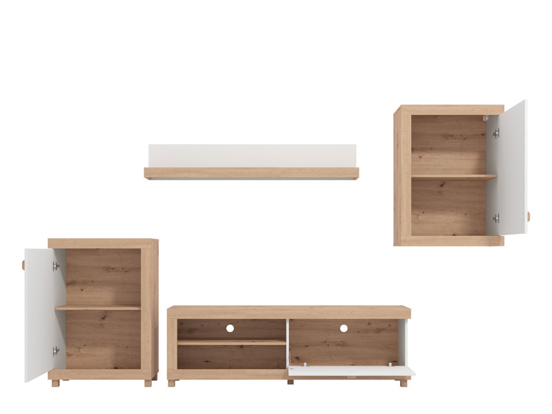 Raftul HASTINGS, într-o combinație de decor din stejar artizanal și decor alb intens, reprezintă o soluție modernă și funcțională pentru amenajarea livingului. Este alcătuit din patru segmente care pot fi aranjate în spațiu în funcție de nevoi. Fiecare dintre elemente are un spațiu utilizabil organizat practic, ceea ce permite depozitarea eficientă și organizarea ordonată. Cu dimensiuni compacte și un design minimalist, raftul HASTINGS se integrează ușor în interioarele moderne, oferind o combinație armonioasă între căldura lemnului și prospețimea decorului alb, cu posibilitatea suplimentară de a adăuga iluminat pentru o atmosferă ambientală completă.