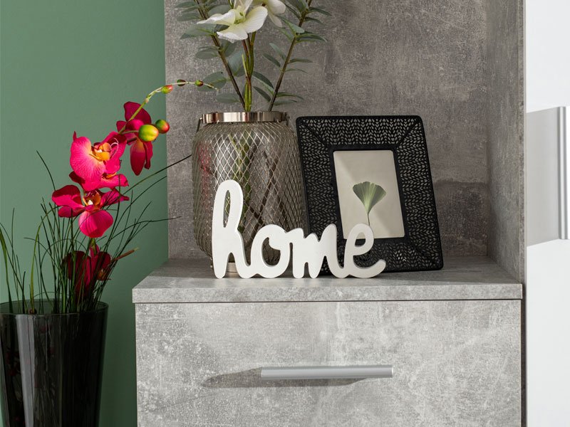 L’entrée MARTIN, au dessein béton et blanc opaque, rendra la première rencontre avec votre maison efficace et agréable. Ce modèle dispose d'un espace utilisable harmonieusement organisé pour ranger les vêtements et les chaussures de saison afin que vous obteniez un espace organisé de manière fonctionnelle, tandis que le miroir positionné au centre apporte une sensation d'espace.
