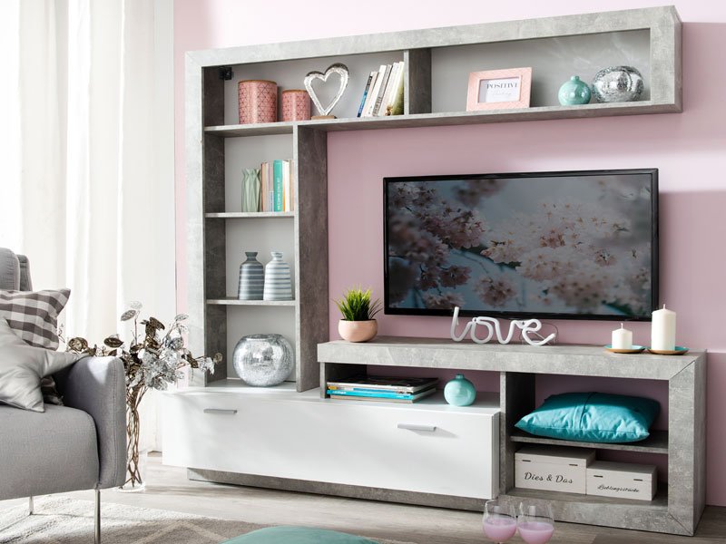 La combinaison meuble TV GLEN, en combinaison de dessein bois noir et blanc opaque, suit l’harmonie de la forme et de la fonction, ainsi qu’une conception saisissante destiné au rafraîchissement moderne du salon. Le segment fermé, un banc TV en position centrale et les segments ouvertes créent un ensemble compact pour toutes vos petites choses précieuses et les appareils audiovisuels. Les dimensions de la partie pour le téléviseur sont de 1154x825mm (largeur x hauteur).