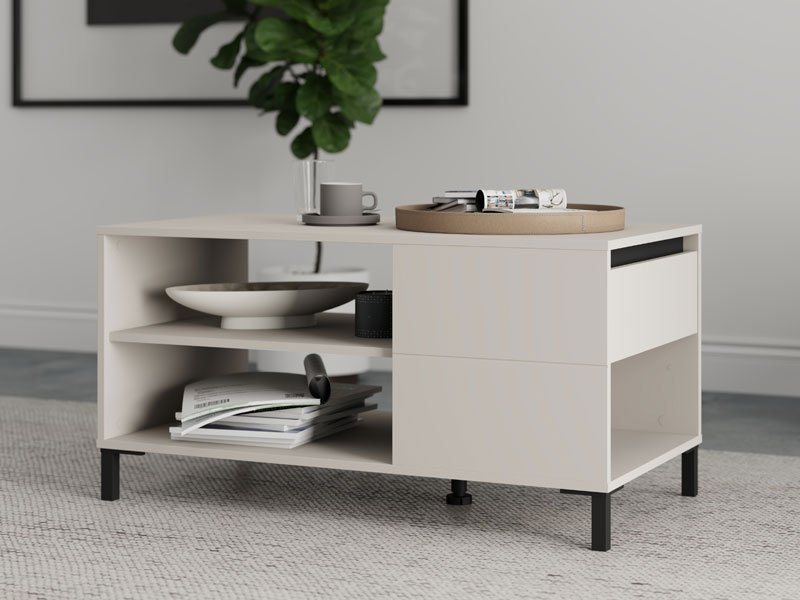 La table basse MARRON en combinaison du décor cachemire et de la feuille matte noire apporte à l’espace un contraste visuel moderne et une chaleur sophistiquée. Son espace utilisable se compose d’une étagère cloisonnée au-dessous de la surface de travail, qui permet un rangement pratique et organisé de divers objets. La table basse MARRON fait partie du système d’éléments MARRON, se distinguant par l’harmonie des tons modernes et la fonctionnalité de la conception moderne.