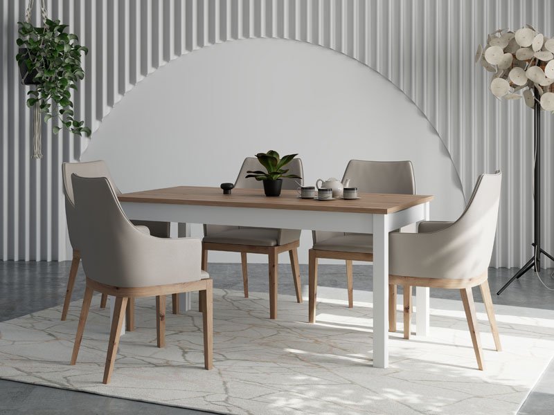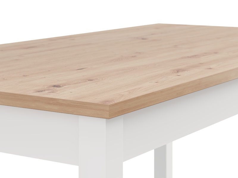 La table de salle à manger BEDFORD 160x80 en combinaison des décors blanc opaque, chêne artisan et de la feuille mate blanche, apporte à l’espace la chaleur, l’élégance et le charme naturel. La surface de la table est pratique et fonctionnelle, idéale pour un usage quotidien et les grandes occasions familiales ou sociales, et sa ligne de conception s’intègre parfaitement aux concepts ouverts du salon et de la salle à manger. La table de salle à manger BEDFORD 160x80 fait partie du système d’éléments BEDFORD, se distinguant par l’harmonie de l’esthétique rustique et de la conception moderne et fonctionnelle.