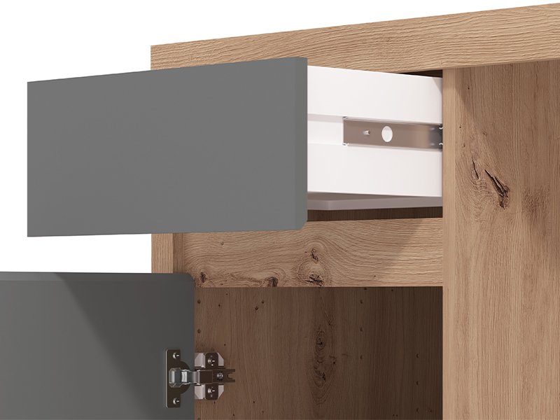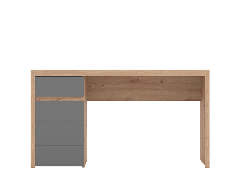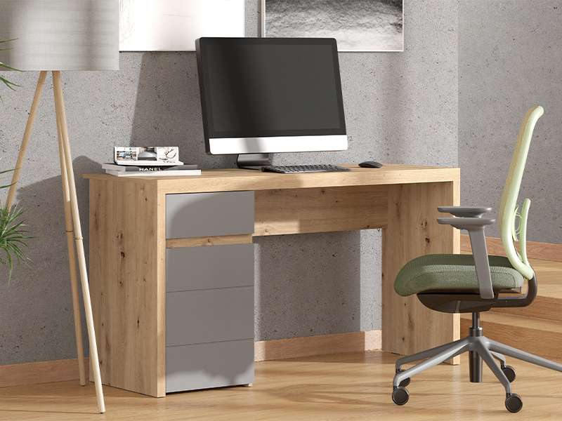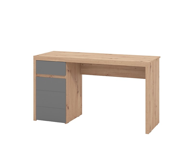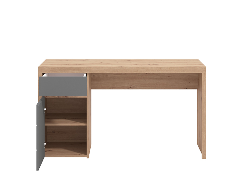 La table d'ordinateur KEPLER 1F1V, en combinaison des décors chêne artisan, gris graphite et de la feuille chêne artisan, se distingue par une conception moderne et élégante avec des façades sans poignées. Outre le plan de travail, son espace utilisable se compose d’un petit tiroir et d’un segment cloisonné fermé, permettant un rangement clair et fonctionnel. Grâce à ses dimensions compactes et à ses décors harmonieusement coordonnés, la table d’ordinateur KEPLER 1F1V est un élément indispensable pour agencer un espace de travail de manière fonctionnelle et claire.