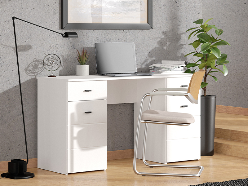 La table d’ordinateur KEPLER 2F2V, au décor blanc opaque, se distingue par une forme claire et fonctionnelle. Au-dessous du plan de travail, des côtés gauche et droit, son espace utilisable se compose d’un segment cloisonné fermé et des tiroirs, permettant un rangement clair et pratique. Grâce à ses dimensions compactes et à son esthétique neutre, la table KEPLER 2F2V est un élément indispensable pour agencer un espace de travail de manière fonctionnelle et claire.