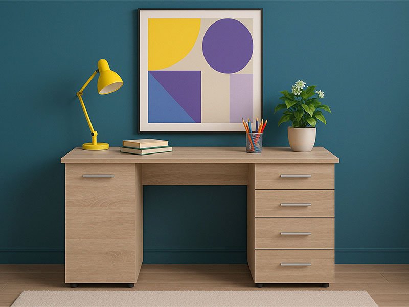 La table ordinateur LIBER, au dessein chêne sonoma, est le détail principal d’un espace de travail parfaitement fonctionnel où tout doit respirer l'ordre et l'organisation harmonieuse. La composition pratique du plan de travail, du système de tiroirs et du segment fermé à battant fournit assez d’espace pour ranger et trier les objets et les documents importants.