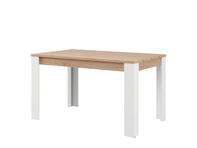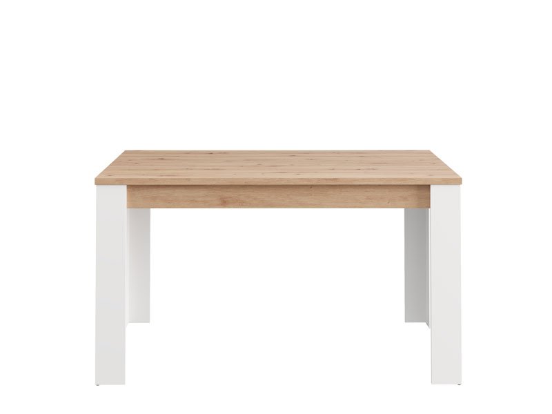 La table de salle à manger SPOLETO 135x80, fabriquée en combinaison de décor chêne artisan et blanc opaque, est un excellent choix pour les salles à manger modernes. Ses lignes épurées et sa conception minimaliste rendent cette table à la fois moderne et fonctionnelle, tandis que ses dimensions de 135x80 cm offrent un confort optimal pendant les repas. La combinaison de la chaleur de chêne artisan, dont est fait le plateau de la table, et des pieds au décor blanc opaque apporte une touche agréable et contemporaine à votre salle à manger, se combinant facilement avec différents styles de chaises.
