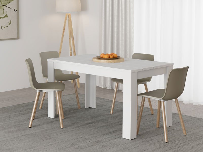 ainsi : La table de salle à manger SPOLETO 135x80, entièrement au décor blanc opaque, est un excellent choix pour les salles à manger modernes. Ses lignes épurées et sa conception minimaliste rendent cette table à la fois moderne et fonctionnelle, tandis que ses dimensions de 135x80 cm offrent un confort optimal pendant les repas. Sa conception et son décor apportent une touche de fraîcheur et de modernité à votre salle à manger, et se combinent facilement avec différents styles de chaises.