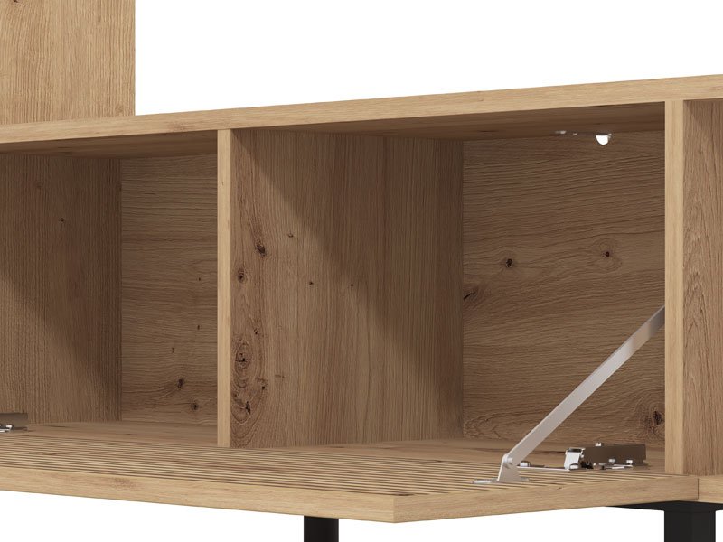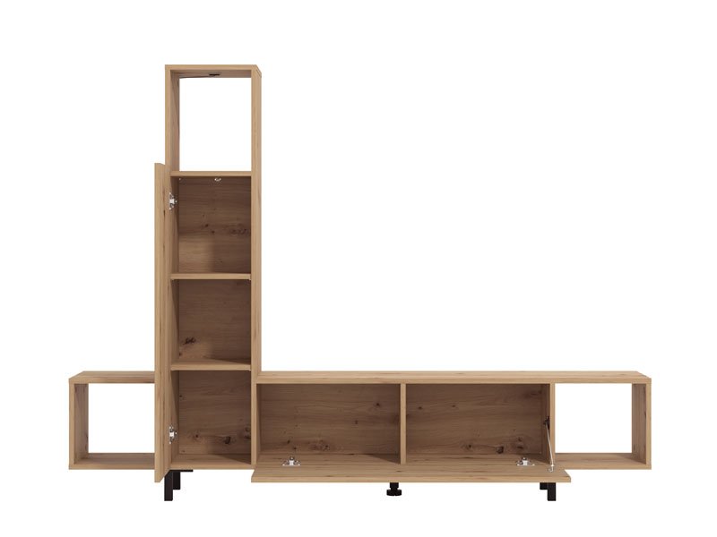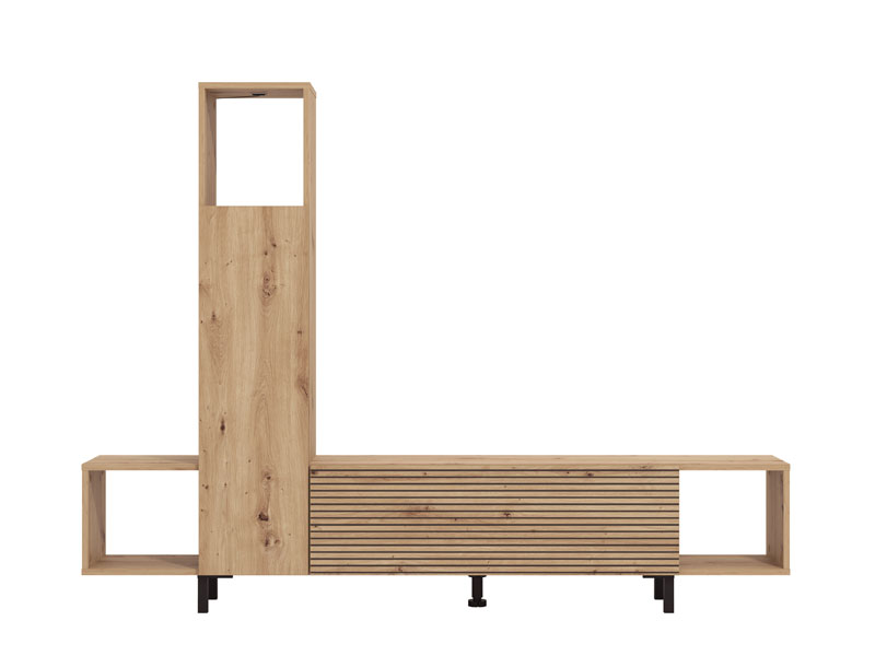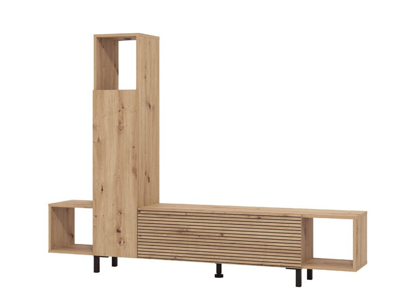 L’étagère ANDROS en combinaison des décors chêne artisan et chêne artisan à rayures, est une solution moderne et fonctionnelle pour l’aménagement du salon. Étant d’une conception compacte et minimaliste, l’étagère ANDROS permet un ameublement pratique de l’espace grâce à ses étagères de rangement ouvertes et fermées, ainsi qu’à sa surface destinée au téléviseur d’une diagonale allant jusqu’à 50". Grâce à l’agencement bien conçu de l’espace utilisable, l’étagère s’intègre facilement dans les intérieurs modernes de la maison.