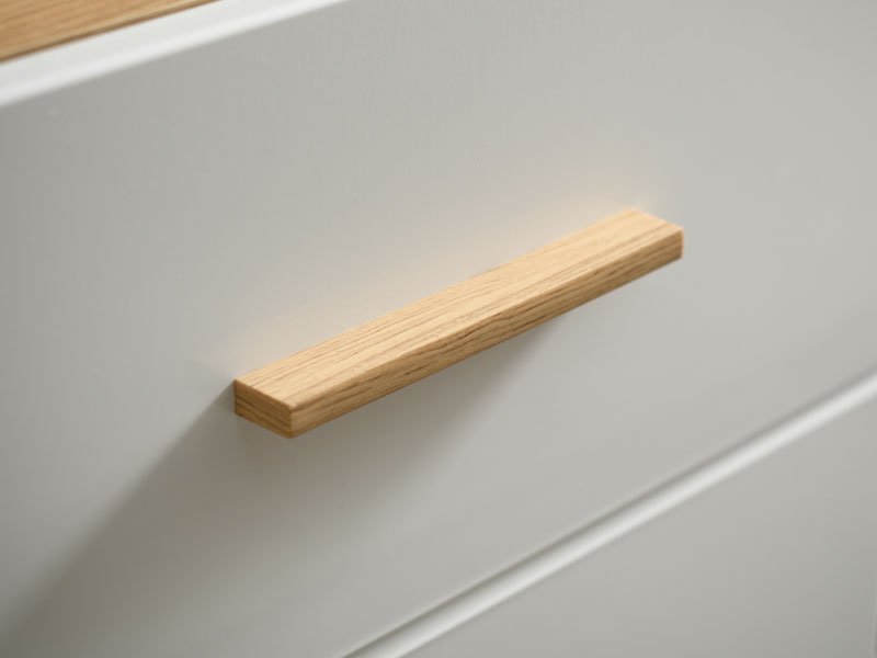 "L’étagère à télévision BRETAGNA TV 150 est fabriquée en combinaison de décor chêne artisan avec de segments au décor de feuille laquée blanche et de feuille de chêne artisan, apportant une esthétique rafraîchissante à l’ambiance. Les poignées en bois relient les décors en un ensemble esthétique, tandis que les pieds hauts soulignent leur élégance. Deux segments latéraux fermés, un tiroir pratique ainsi qu’une étagère ouverte, contribuent de manière remarquable à l'organisation fonctionnelle du salon.