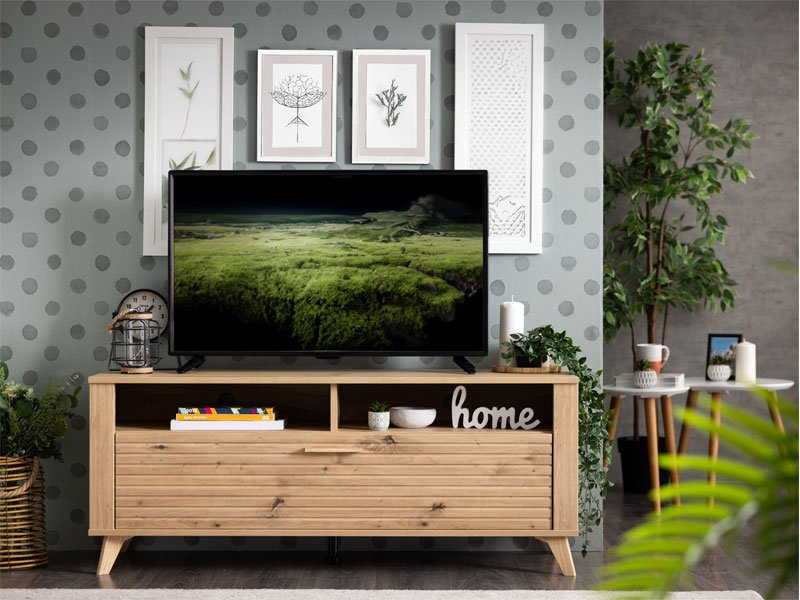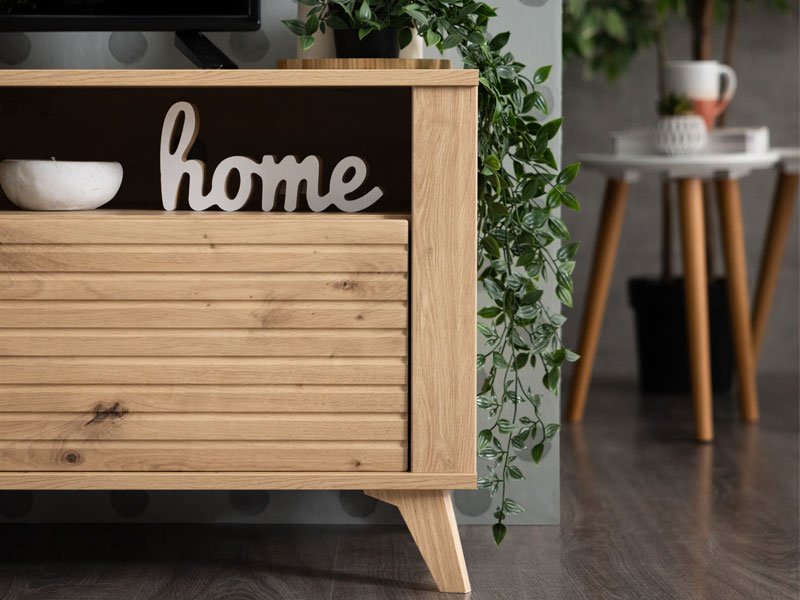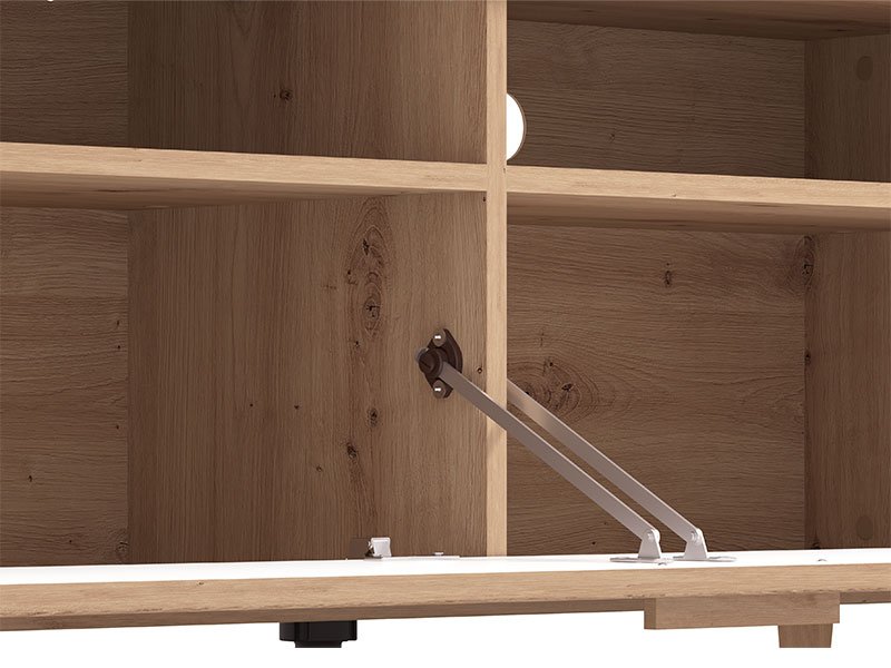L'étagère à télévision REDON, en combinaison de décor chêne artisan et feuille chêne artisan, peut contribuer à équiper votre maison selon les dernières normes intérieures, et à mettre en valeur votre coin télé avec un joli meuble. L’étagère à télévision REDON dispose d’un segment fermé et d’un segment ouvert avec des cloisons. Le segment ouvert convient aux équipements audiovisuels.