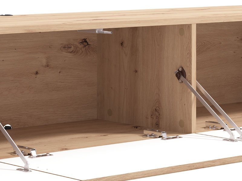 L’étagère à télévision ROYAN TV 192 3K3V en combinaison de décor chêne artisan et feuille chêne artisan, est destinée à meubler le salon et se caractérise par une conception moderne, ainsi qu’une note esthétique importante. C’est un meuble fonctionnel qui s'intégrera idéalement dans l'ambiance des maisons modernes. L’espace utilisable se compose de trois cloisons fermées. L’étagère à télévision ROYAN TV 192 3K3V est un modèle d’étagères à télévision console se comptant parmi les tendances les plus courantes dans la conception de meubles en panneaux. Ce modèle d’étagère à télévision dispose de la possibilité d'ajouter un éclairage.