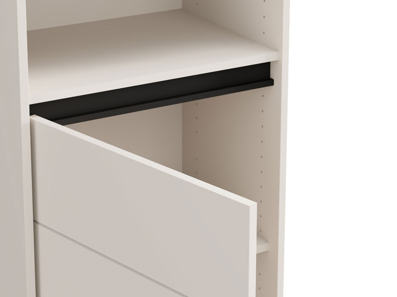 La vitrine MARRON 1K1V POP 193 en combinaison du décor cachemire et de la feuille matte noire apporte à l’espace un contraste visuel moderne et une chaleur sophistiquée. Son espace utilisable se compose d’un segment cloisonné fermé et de trois étagères ouvertes, permettant un rangement pratique et organisé des objets décoratifs, des livres et des autres petits objets. La vitrine MARRON 1K1V POP 193 fait partie du système d’éléments MARRON, se distinguant par l’harmonie des tons modernes et la fonctionnalité de la conception moderne. Elle dispose d'une option d’éclairage LED supplémentaire, accentuant et illuminant davantage l’espace.