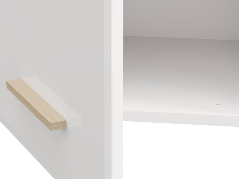 La vitrine CARLOW 1K 1V 96 est un élément mural élégant qui contribue à la légèreté visuelle et au caractère moderne du salon. Elle est fabriquée en combinaison du décor blanc opaque et de la feuille laquée blanche, contribuant ainsi à des lignes épurées, une ambiance lumineuse et une intégration facile avec les autres éléments du système. Son espace fonctionnel comprend un segment cloisonné et la partie vitrée, idéale pour exposer des objets décoratifs. Cette vitrine fait partie du système d’éléments CARLOW pour l’ameublement du salon et est un ajout harmonieux à l’ensemble de la conception.